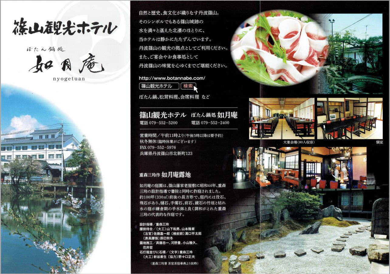 | (秋冬は平日限定、要予約) ぼたん鍋、篠山セット C篠山セットミックスぼたん鍋 《ミニ焼猪付きミックスぼたん鍋セット》 10,500円(税込) 要予約、2名様より 内容:お通し5種、焼き猪、 ミックス肉ぼたん鍋(特選ロース、上カルビ) うどん半玉、デザート D篠山セットロース肉ぼたん鍋 《ミニ焼猪付きロース肉ぼたん鍋セット》 11,700円(税込) 要予約、2名様より 内容:お通し5種、焼き猪、 ロース肉ぼたん鍋 うどん半玉、デザート (平日限定、要予約) ぼたん鍋、如月庵コース E如月庵ミックスコース 《前菜9種盛付き特選ロース肉ぼたん鍋コース》 12000円(税込) 要予約、2名様より 内容:前菜9種盛、焼き猪、 特選ミックス肉ぼたん鍋、 うどん半玉、デザート F如月庵ロースコース 《前菜9種盛付き特選ロース肉ぼたん鍋コース》 13,200円(税込) 要予約、2名様より 内容:前菜9種盛、焼き猪、 特選ロース肉ぼたん鍋、 うどん半玉、デザート ![]() 前菜イメージ ![]() ![]() ![]() |